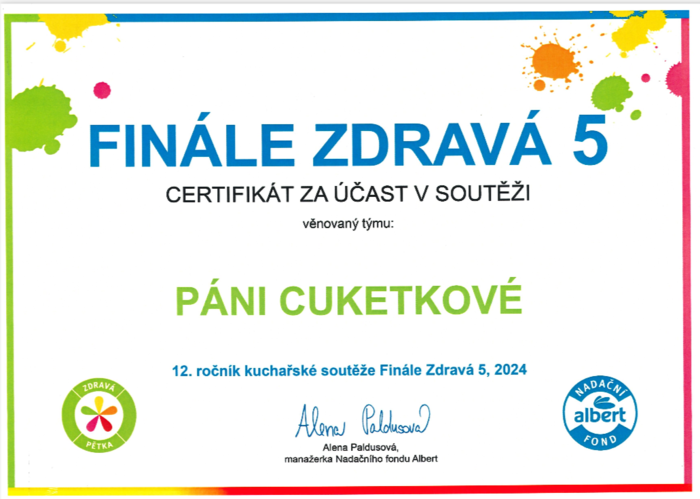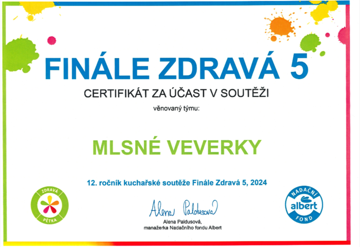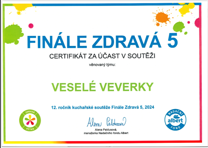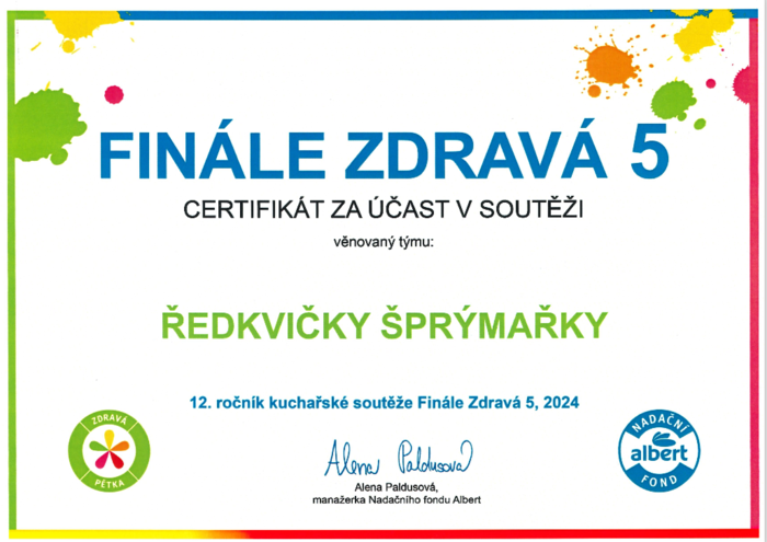 I tento rok se děti v MŠ Radost zúčastnily kulinářské soutěže Zdravá 5. Všechny pokrmy od dětí byly pestrobarevné a chutné. Společně jsme si na pokrmech s celými třídami pochutnali a děti měly možnost vyzkoušet si práci s potravinami v kuchyni.
