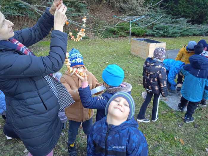 Do centra Gloria jsme zašli zazpívat vánoční koledy a přáníčka jsme zde osobně předali. Ozdobili jsme stromy ve zdejší zahradě našimi semínkovými krmítky.
