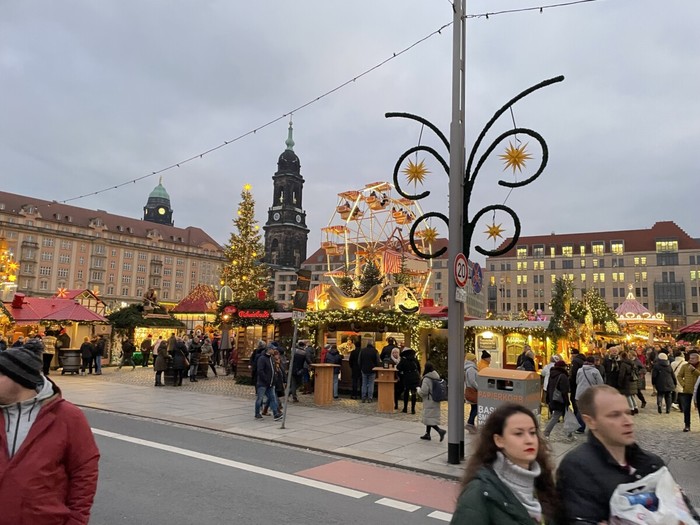 Poté jsme navštívili nejstarší vánoční trh v Německu – Striezelmarkt, kde jsme mohli ochutnat místní speciality a nakoupit drobné dárky. Prošli jsme si také známou nákupní ulici – Prager Strasse. Před odjezdem jsme se znovu vydali na osvícené vánoční trhy, které měly krásnou podvečerní atmosféru.