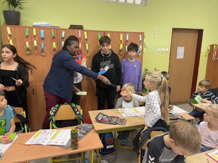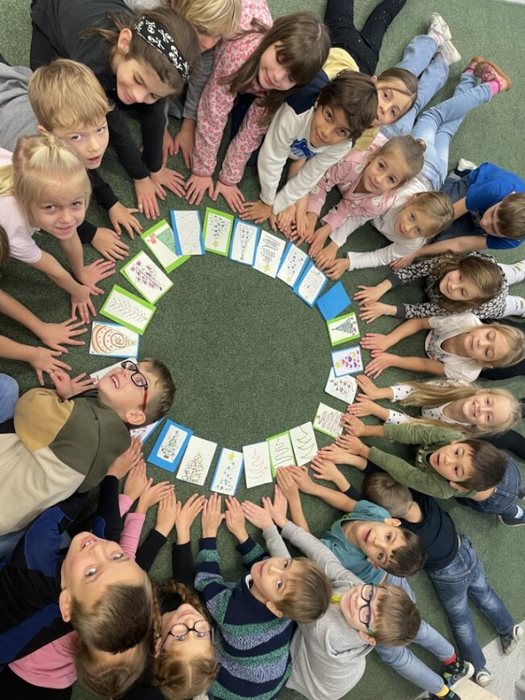 Přemýšleli jsme, jak zpříjemnit čas před Vánoci našim milým prvňáčkům a vlastně i sobě, a tak jsme jim v hodinách výtvarné výchovy vytvořili přáníčka, v češtině je vyšperkovali a v hudební výchově natrénovali pár koled. Zjistili jsme si, kdy bude celá třída pohromadě, a přáníčka jim šli předat.