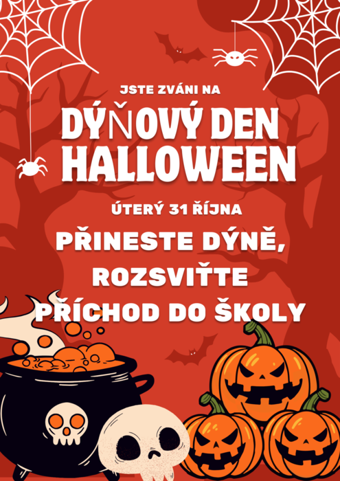 Změna letního času na zimní přináší krátké dny a tmu ráno i v pozdním odpoledni. Přineste dýni, nainstalujte ji na schody před školu. Kdy? V úterý 31. října ráno. Můžete přidat elektrickou svíčku nebo o ni požádat v sekretariátu školy. Prostě rozsviťme si pošmourné dny! Odvážlivci v halloweenských kostýmech vítáni.
