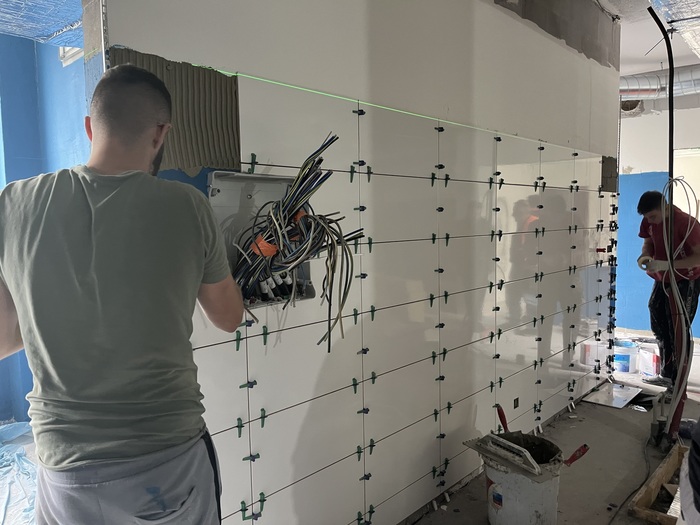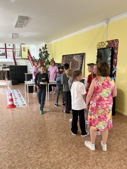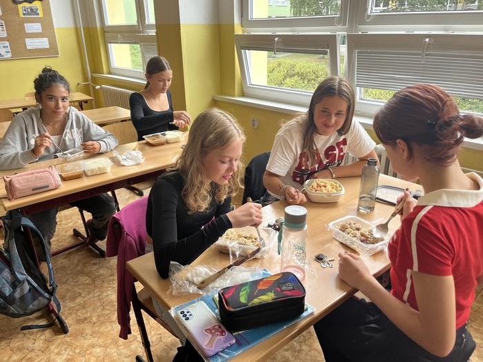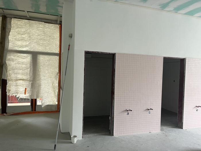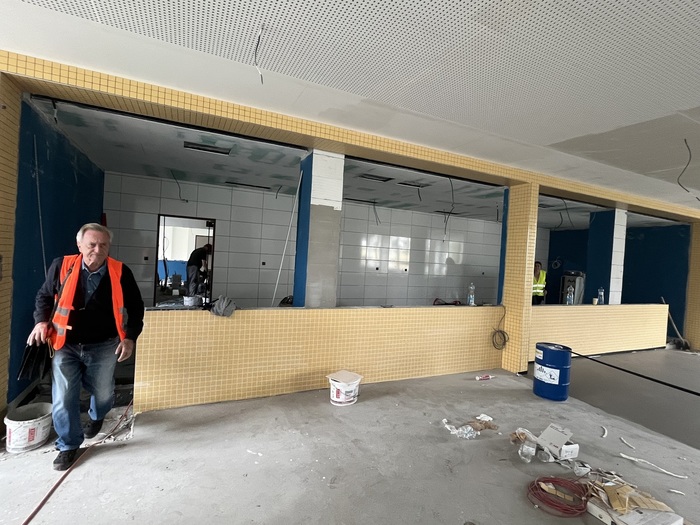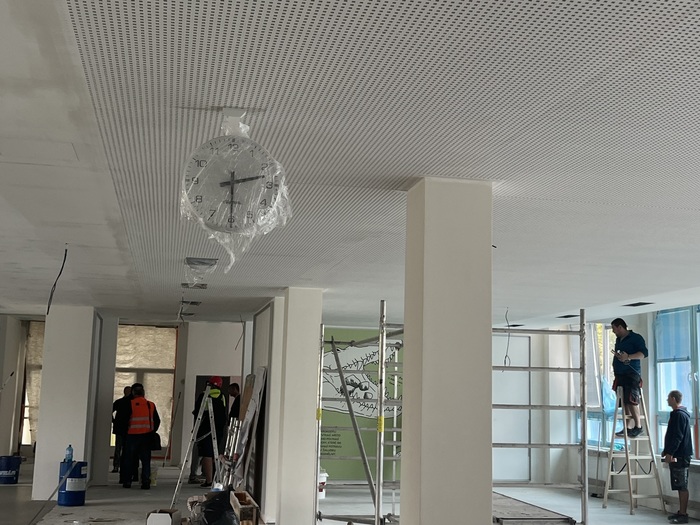 Dlouze, ale pořádně. Z holého betonu pomalounku vykukují známé prvky - kachličky, hodiny, protihlukové panely. Strop obložen, podlaha vystěrkována. Pokud se i nadále bude dařit, intenzivní deště nenaruší postup prací a kolaudace bude bez problémů, měli bychom se 30. září poprvé najíst v nových prostorách. Sice stále z krabiček, ale bude to komfortnější. Nyní jíme ve třídách - a zvládáme to. Podívejte se na fotky. Samotná kuchyň také získává obrysy, ale na její provoz si počkáme až do začátku listopadu.