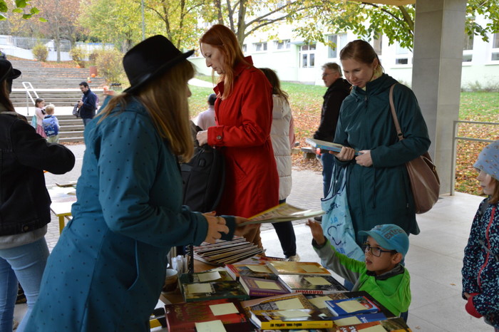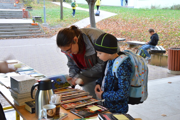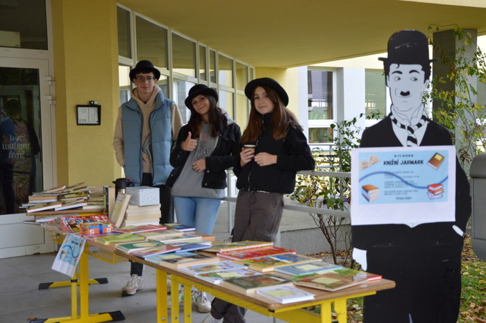 Ve středu 2.11. proběhl na naší škole, snad můžeme konstatovat tradiční, Knižní jarmark. Jelikož jsou naši žáci a žákyně již zdatnými organizátory, veškeré přípravy proběhly na jedničku. Pod vedením zástupců žákovského parlamentu jsme knihy seřadili, nacenili a připravili z nich tematicky řazenou prodejní výstavu. Knižní jarmark rozproudil dění na škole o velké přestávce a v průběhu 3. vyučovací hodiny, kdy si zejména mladší žáci a žákyně mohli jarmark prohlédnout opravdu zblízka. Mnozí se do knih začetli přímo na jarmarku a bylo těžké celou akci během vyučování ukončit. Druhá část probíhala ve venkovních prostorech školy. Odpoledního prodeje se ujaly nejstarší žákyně, které s lehkostí zkušených obchodních zástupkyň zdatně komunikovaly s koupěchtivými návštěvníky jarmarku.