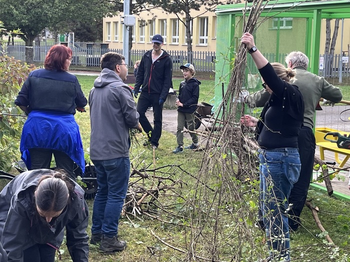 V sobotu 23. 9. proběhl komunitní den s cílem přípravy plochy pro novou školní zahradu. Postupujeme malými krůčky, ale kamínek za kamínkem se zahrada postupně rodí. Byl částečně vyklučen a prořezán nálet v živém plotu, naplněn trojkomorový kompostér, částečně vyčištěna plocha od bioodpadu ze sportovního areálu. Pracovní úsilí jsme uzavřeli opékáním špekáčků na školní zahradě. Ráda bych poděkovala všem rodičům a jejich dětem, kteří přiložili ruku k dílu, stejně jako všem pedagogickým pracovníkům, i s vlastním motorovým vybavením, kteří věnovali sobotní půlden opět škole.