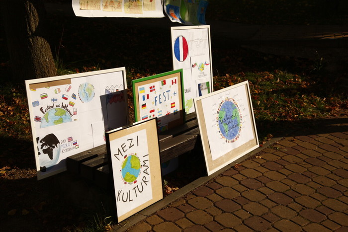 Vlastní festival Mezi kulturami začal v 15 h. Žákovský parlament měl plné ruce práce s přípravami venkovních prezentací každého ročníku. Starší žáci pomáhali připravit stánky spolužákům mladším, týmový duch byl cítit po celé festivalové odpoledne. Během odpoledne se mohli žáci zúčastnit soutěže, kterou připravil žákovský parlament na základě všech třídních prezentací. Touha po vědění byla nespoutaná. I ti nejmladší žáci a žákyně se snažili za pomoci svých rodičů zodpovědět kvízové otázky, které je zavedly do různých koutů světa. Brzy se dozvíte, kdo patří mezi nejzvídavější žáky naší školy, kteří odpověděli správně na všechny otázky…
