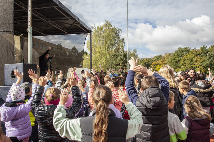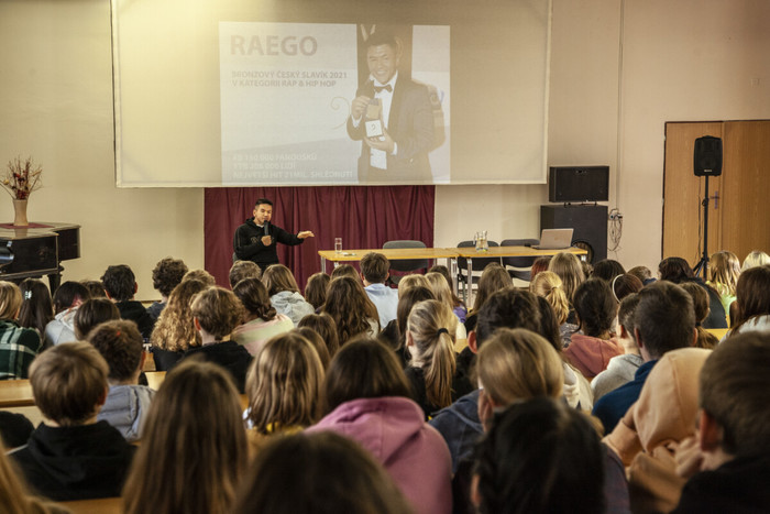 V 10 h program pokračoval přednáškou pro 8. a 9. třídy s rapperem Raego, který žáky zaujal svým životním příběhem, jež je inspirativní pro nejednoho mladého člověka, který prochází složitou etapou dospívání. Žáci se nebáli ptát, Raego s nadhledem, upřímností a inteligencí žákům vřele odpovídal. Ve 12 h se konal celoškolní koncert, kterého se zúčastnili i mnozí rodiče a přátelé naší školy. Atmosféra byla spontánní, živá, prostě bezvadná!
