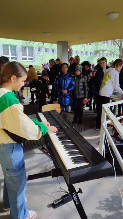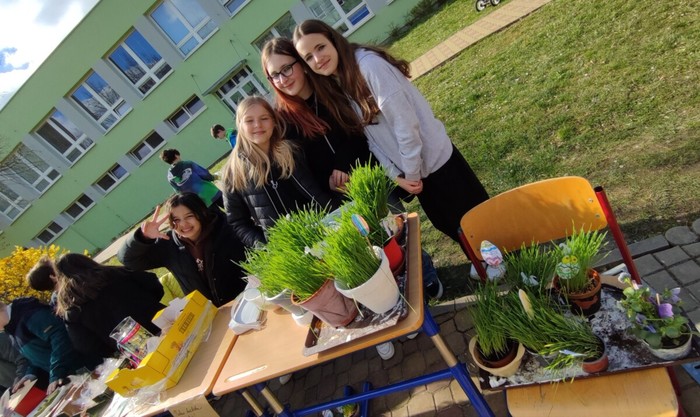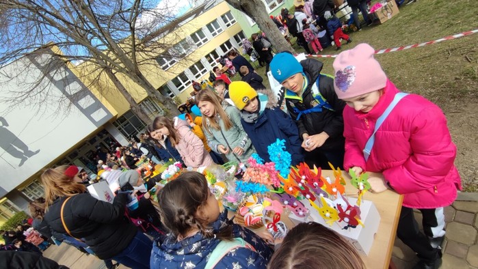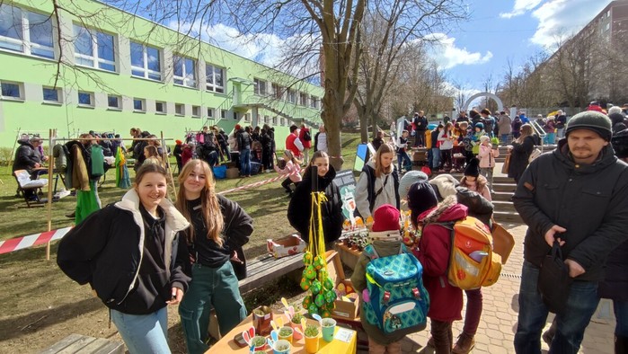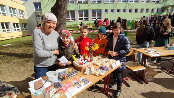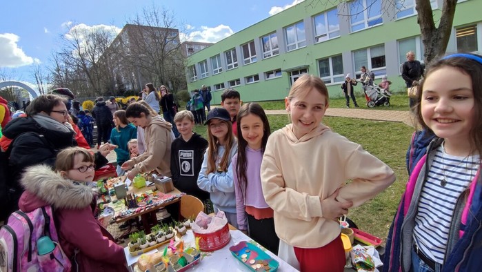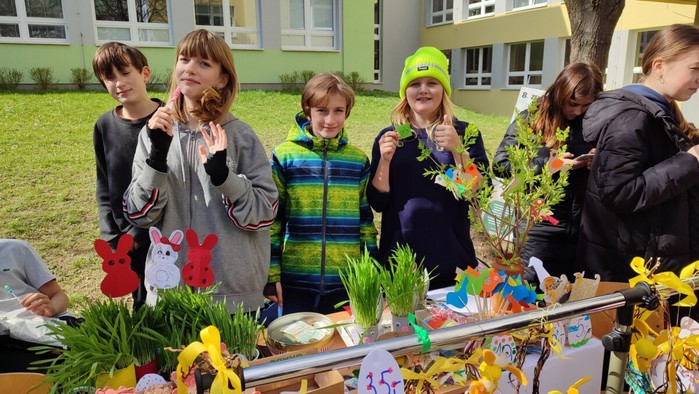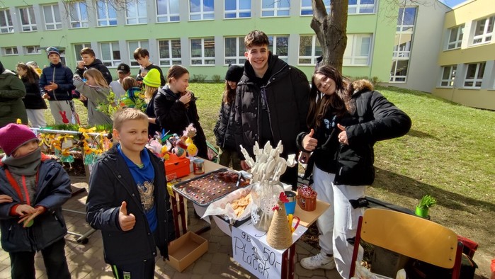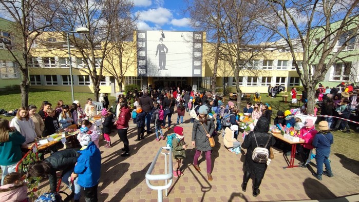Dne 4.4. se uskutečnil na naší škole již tradiční Velikonoční jarmark! Počasí nám krásně vyšlo, všichni měli úsměvy na tvářích. Prodávalo se jedna radost:) Některé děti zde i zahrály na hudební nástroj, jinak se o hudbu postarali žáci a hráli jarní písničky jako např. ,,Jaro dělá pokusy”. Prodávali jsme nejen velikonoční výrobky a dekorace, ale i občerstvení, které připravili sami naši žáci a žákyně. Mimo jiné se před jídelnou uskutečnil minikoncert nadačního fondu Harmonie a vedle jarmarku také probíhal SWAP s použitým oblečením, knížkami a hračkami.