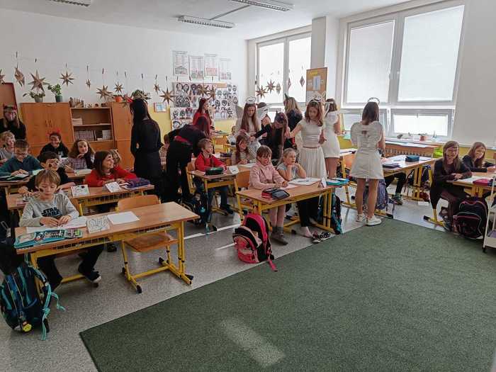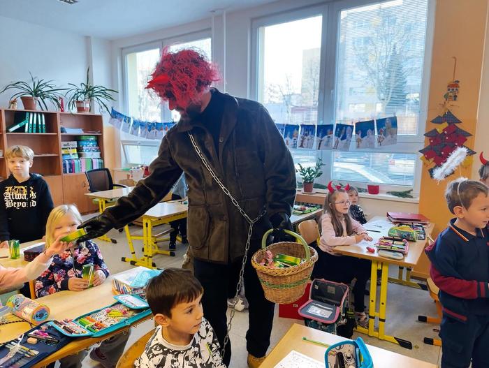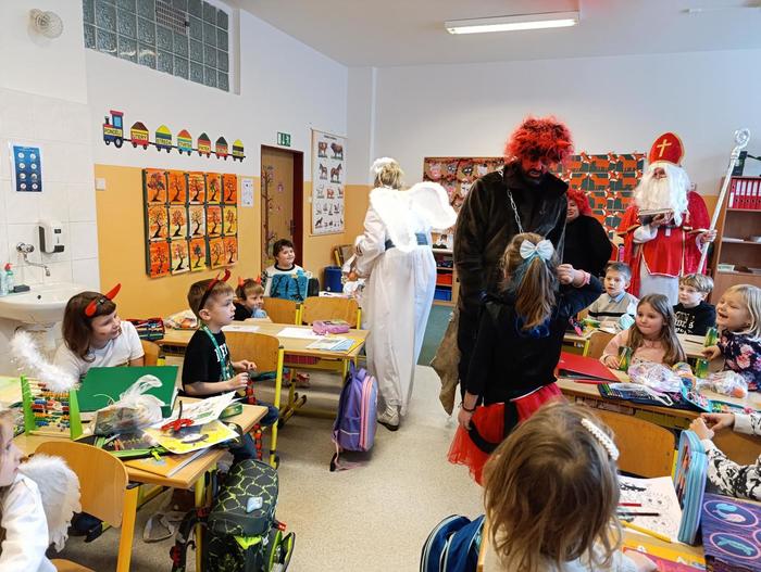 5. prosinec nám jako vždy přinesl Mikuláše. Už se stalo tradicí, že do prvních a druhých tříd chodí mírnější Mikuláš s milým andělem a rozverným čertem.