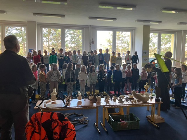 Kdo pozorně poslouchal, mohl bez obav odpovídat na otázky v závěrečném poznávacím kvízu a sklidit tak uznání a pochvalu od zkušených myslivců. Ti dětem ještě ukázali ochranné oblečení proti divoké zvěři a vysvětlili potřebu přikrmování lesní zvěře hlavně v mrazivém zimním počasí. Svou poutavou besedu s dětmi zakončili znělkou Halali na lesní roh, která je mysliveckou poctou zvěři a myslivosti.