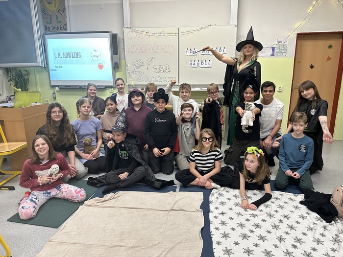 Třída 6.C se zúčastnila Noci s Andersenem s tématem „J. K. Rowlingová slaví 60 let“. Po úvodní prezentaci o J.K.R. byli žáci rozděleni do kolejí, kde tvořili přesmyčky jmen, seznamovali se se ságou o Harrym Potterovi a četli Bajky Barda Beedleho a nakonec vytvořili plakát na Příběh Tří Bratří.