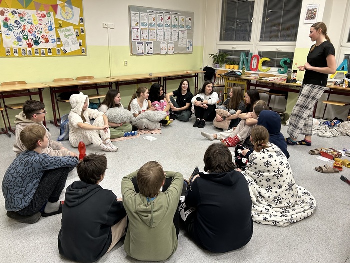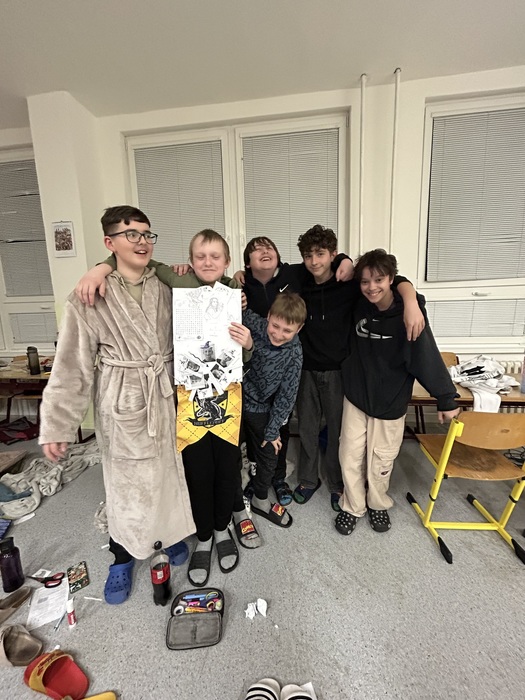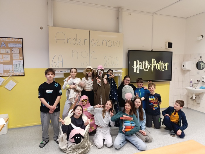 Sedmáci strávili Andersenovu noc v duchu Harryho Pottera k 60. výročí J.K.Rowlingové. V průběhu večera si prošli únikovou hrou, kde v přidělených kouzelnických kolejích plnili jednotlivé úkoly. Četli, dívali se na úryvky z filmu, luštili křížovky, plnili osmisměrky a další. Celkově si myslím, že si to moc užili a na konci, po odhalení správného zaklínadla, každá kolej otevřela svou zakletou skříňku s dobrotami