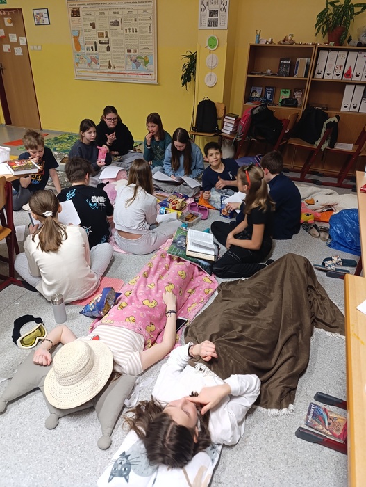 Andersenovu noc jsme si moc užili. Ponořili jsme se do fantasy světa s knihou Harry Potter a Tajemná komnata. Účastníci napekli a přinesli neskutečné množství dobrot, hladem jsme tedy netrpěli. Během společné četby jsme tvořili společný plakát a záložky. Už nyní se těšíme na další ročník Andersenovy noci!
