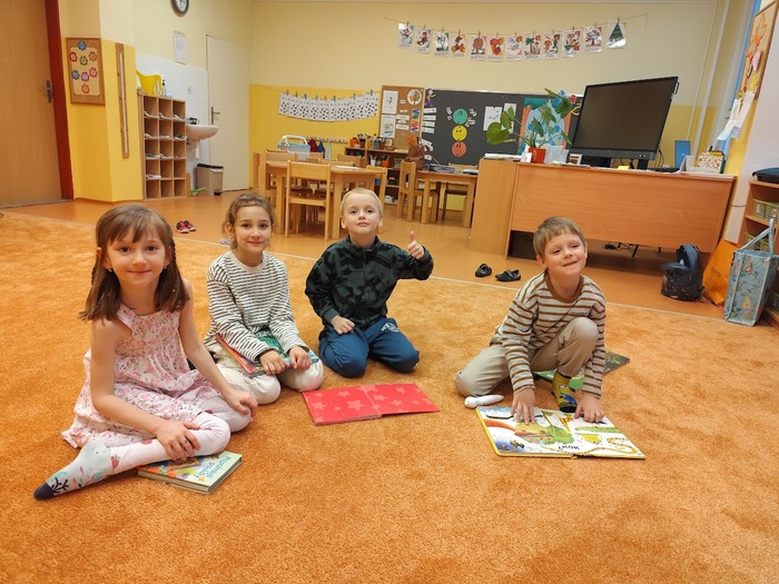 Na noc s Andersenem si děti z přípravné třídy přinesly své oblíbené knížky, které představily svým kamarádům. Z každé knížky jsme společně přečetli příběh a na památku jsme si vyrobili jednoduchou záložku z papíru.