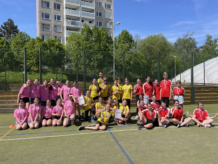 Ve dnech 29. a 30. dubna se na půdě naší školy uskutečnilo okresní kolo ve vybíjené. První den byl vyhrazen pro dívky ze šestých tříd, které reprezentovaly devět základních škol z Prahy 5. Naše žákyně si vedly výborně – v základních skupinách, rozdělených do dvou tabulek, zvítězily ve všech čtyřech utkáních a postoupily z prvního místa. Čekal je finálový duel proti Gymnáziu Nad Kavalírkou. Finále bylo napínavé až do poslední minuty. Zápas skončil v základní hrací době nerozhodně, a proto následovalo prodloužení, ve kterém naše dívky bohužel těsně podlehly. Přesto prokázaly týmového ducha, bojovnost a skvělou sportovní morálku – zaslouženě si tak odvezly stříbrné medaile.