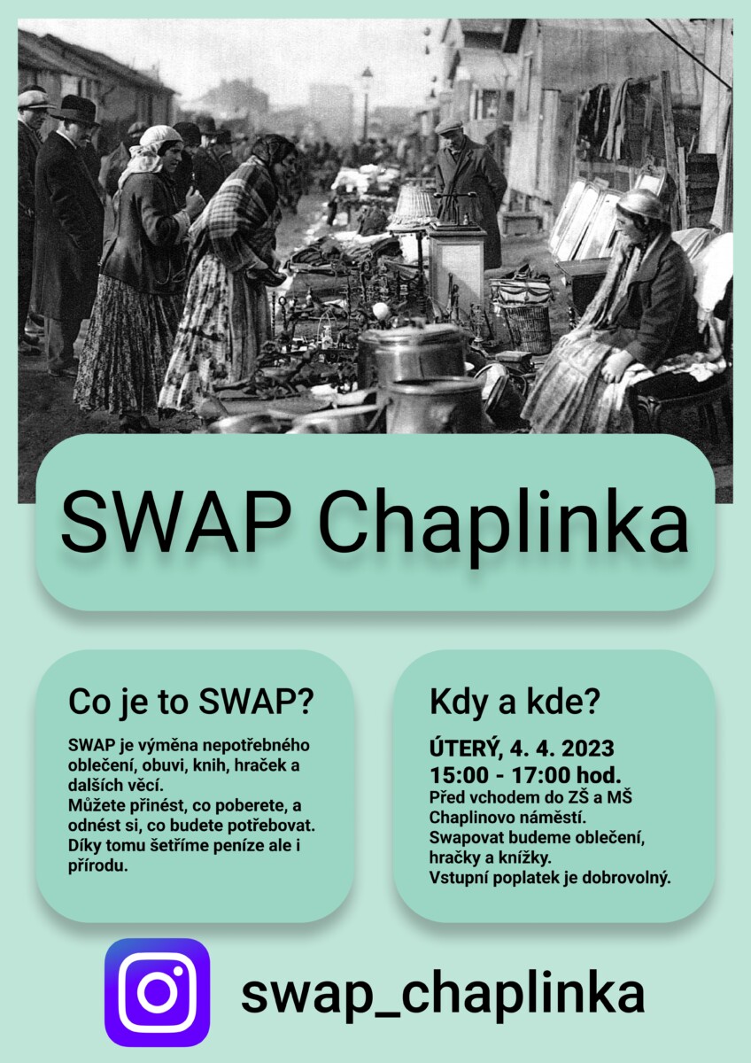 Pozvánka na SWAP – máte doma věci, které již nepoužíváte, ale dalším by mohli udělat radost nebo posloužit? Přineste je na náš první SWAP, který se bude konat v rámci Velikonočního jarmarku v úterý, 4.4. od 15h do 17h před školou. A co to vlastně je? Jednoduše výměna zboží (oblečení, věci do domácnosti, tašky, kufry, hračky…).