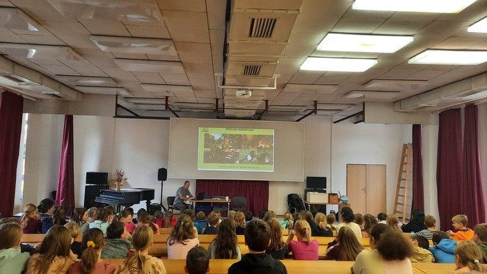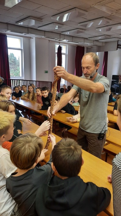 Tentokrát si pro nás připravil program s názvem Příroda kolem nás. Přivezl na ukázku některé živočichy a také nám promítnul zajímavá videa např. o tom, jak se umí mravenci bránit nebo, jak to vypadá, když se přemnoží myši.
