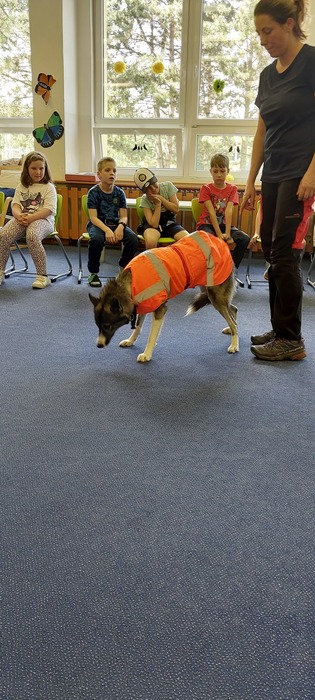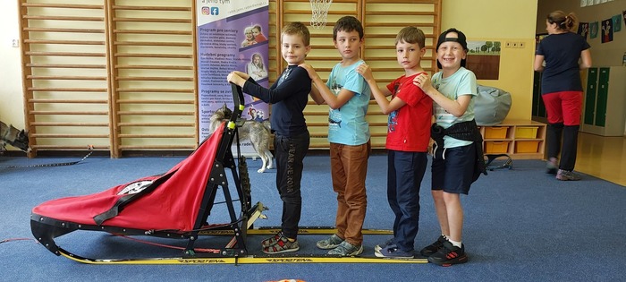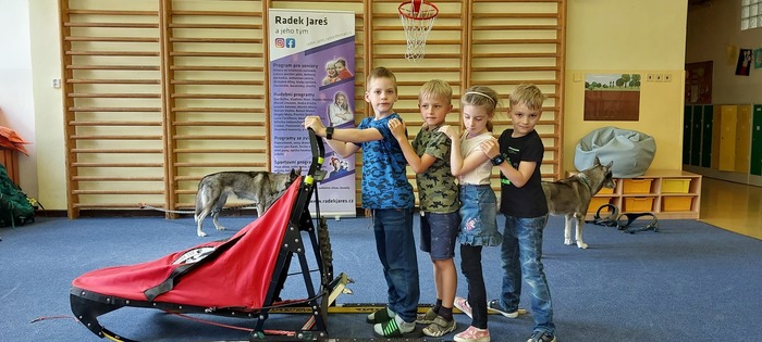 V pátek dne 7.6. nás navštívilo psí spřežení. Během setkání se děti dozvěděly zajímavé informace ze života smečky tažných severských psů. Vyzkoušely si, jak se pes zapřahá do postrojů k tahání sání a prohlédly si vybavení musherů.