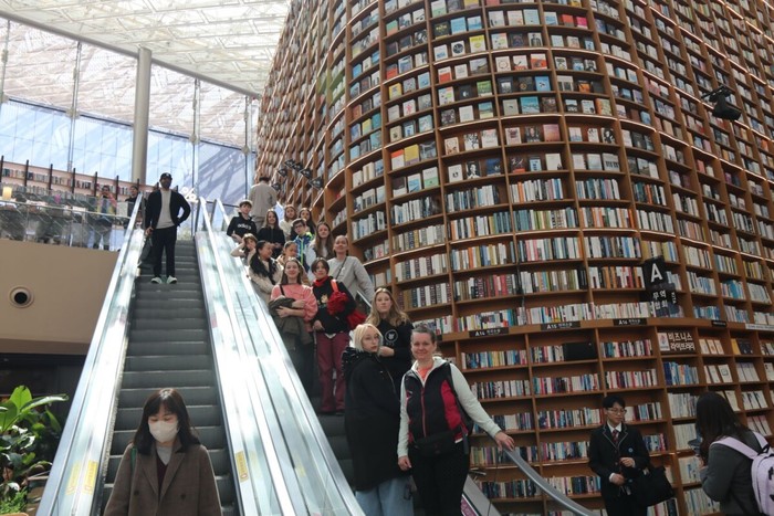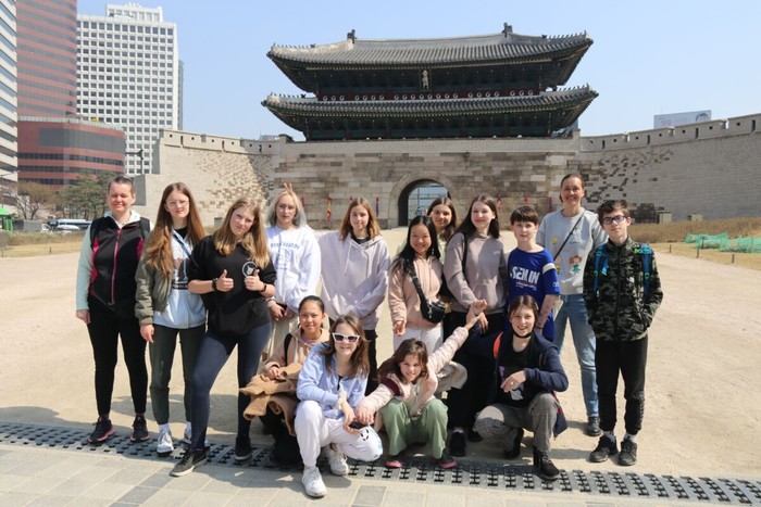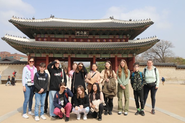 Velkým zážitkem a současně hlavním bodem našeho školního výletu byla návštěva partnerské školy Daewon Middle School. Na návštěvu jsme se poctivě připravili a po úvodním přivítání a prvních konverzacích v anglickém jazyce naši žáci a žákyně představili svým vrstevníkům naši školu, popovídali o tom, co je ve škole baví či nebaví a všechny překvapili svojí spontánností a dobrou úrovní angličtiny. Následně si na vlastní kůži mohli vyzkoušet, jaké to je být korejským žákem. Naši žáci byli rozděleni do korejských tříd a během dopoledne a odpoledne se zúčastnili výuky anglického jazyka, fyziky, občanské výchovy, přírodopisu, tělocviku či jiného předmětu společně se svými novými korejskými kamarády. My učitelky jsme jen hrdě pozorovaly, jak se žáci aktivně a přirozeně do výuky zapojili.