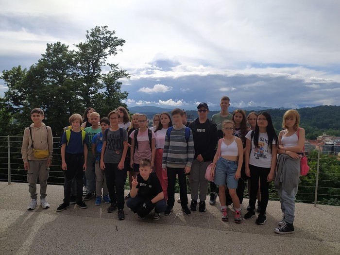 Dne 5. 6. se po dlouhých přípravách žáci 7. ročníků vydali na poznávací výlet do Slovinska v rámci projektu Rozvoj demokratické kultury na naší škole. Tento zahraniční pobyt byl již druhým výjezdem, který byl v rámci tohoto projektu uspořádán. Poprvé jsme s letošními osmáky navštívili Slovensko. Letos jsme se vydali přeci jen dále. Program byl opravdu rozmanitý. Po dlouhé cestě jsme přijeli ještě do deštivé Lublaně, která měla i za tohoto počasí své středomořské kouzlo. Druhý den nás čekala návštěva slovinské základní školy. Po vřelém přijetí ze strany ředitele školy, pana Božo Starašiniče, jsme zhlédli bohatý program, který pro nás připravili žáci této školy. Posléze naši žáci představili slovinským kamarádům v anglickém jazyce Českou republiku, Prahu a nakonec naši školu. Prezentace byly opravdu pěkné a naší žáci jasně dokázali, že jim anglický jazyk není cizí. Po prezentacích se naši žáci rozdělili do několika skupin a společně se svými vrstevníky vařili slovinské dobroty, stavěli stany, tvořili česko-slovinský slovníček či společně vytvořili hudební skladbu. Po tvořivých dílnách nás ještě čekal zápas ve fotbale. Výběr našich zdatných fotbalistů porazil slovinské kluky 2:1. Po náročném zápase nás pan ředitel všechny pozval na chutný oběd. Celý den jsme zakončili besedou s ředitelem, který děti opravdu dokázal nadchnout. Poté jsme se odpoledne ještě vydali na Lublaňský hrad a společně s tamními pedagogy jsme objevovali tajemná zákoutí uliček tohoto města.