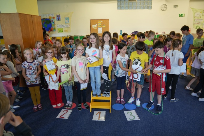 Úterní odpoledne dne 21. května 2024 bylo ve školní družině věnováno sportu. Pro děti byla připravena soutěž ve skocích přes švihadlo. Šlo o počet správně provedených přeskoků přes švihadlo za 1 minutu. Soutěžily nejlepší 3členné týmy vyslané z jednotlivých družin ve 3 věkových kategoriích, vyhlášeni byli i nejlepší jednotlivci. Děti tak dostaly příležitost změřit síly se svými vrstevníky a ukázat své dovednosti.