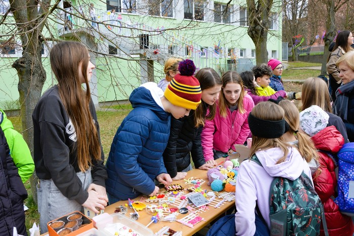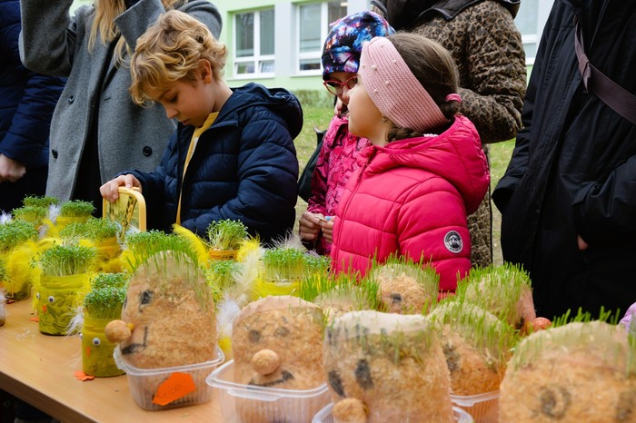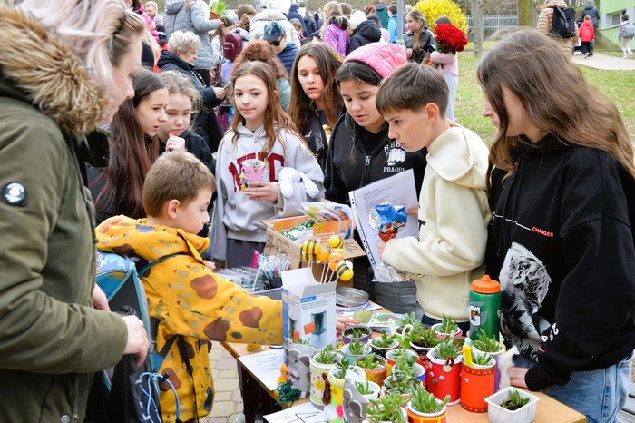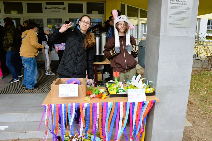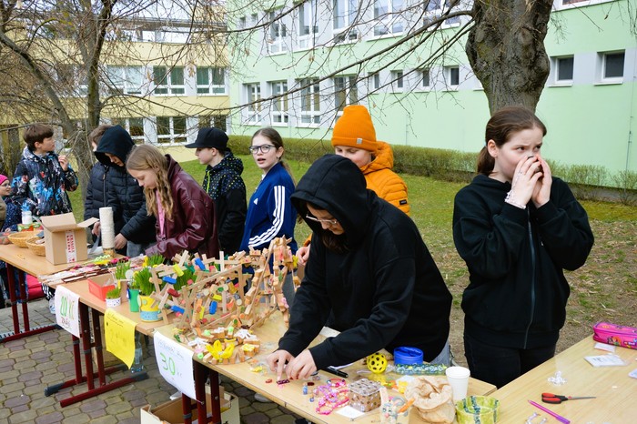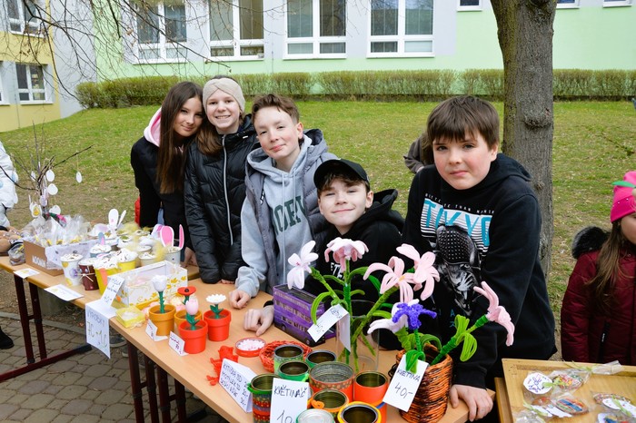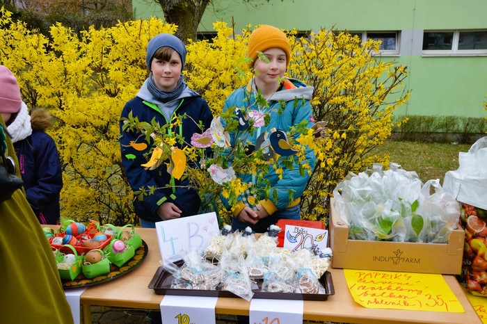 Velikonoční jarní jarmark, který se uskutečnil v úterý 31. března, se opravdu vydařil. Před školou panovala po celé odpoledne velmi příjemná a přátelská atmosféra, kterou si užili malí i velcí návštěvníci. Stánky nabízely pestrý výběr výrobků – od jarních sazeniček přes krásné velikonoční dekorace až po výrobky z dílniček. Nechyběly ani dobroty všeho druhu, které lákaly k ochutnání.