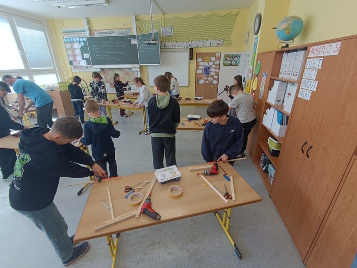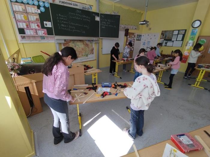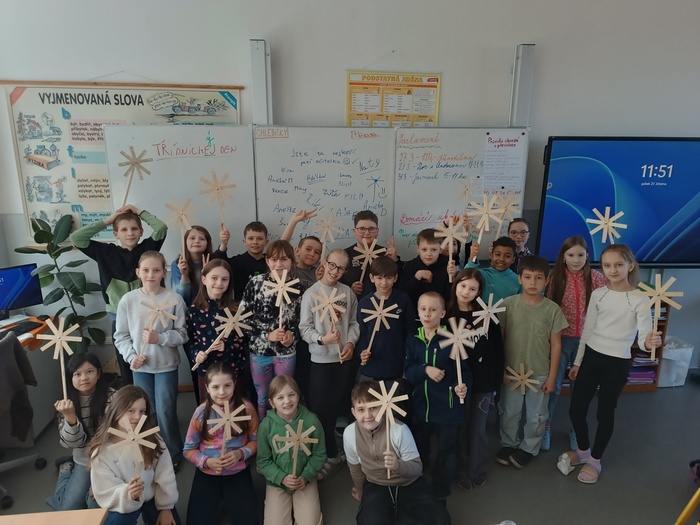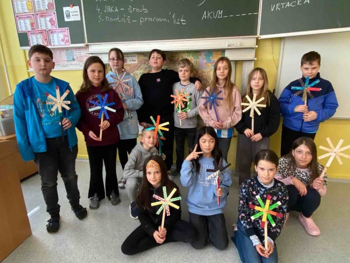 V pátek 27. března 2026 proběhl na naší škole třídnický den zaměřený na rozvoj pracovních dovedností žáků. Třídy 4. A, 4. C a 4. E se během něj, kromě dalších aktivit, pustily také do výroby větrníků.