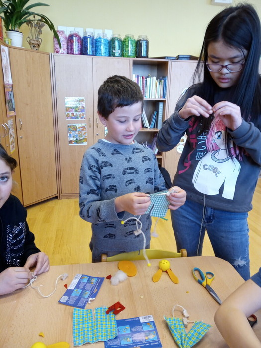 Velikonoční svátky se blíží mílovými kroky a i my, zástupci 7. C a přípravné třídy Včeliček, jsme se přidali k přípravám na Velikonoční jarmark. Vyráběli jsme překvapení, která můžete vidět a koupit na našem „stánku“. Víc se rozepisovat nebudeme, přijďte na jarmark a vše uvidíte na vlastní oči.