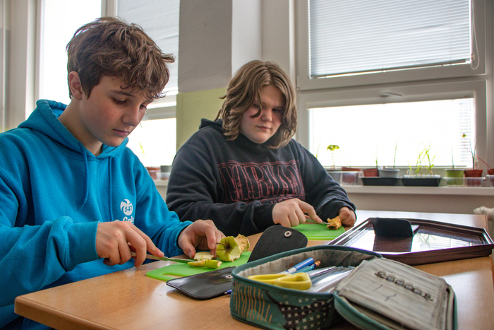 V první pracovní skupině žáci připravili bioodpad, nakrájeli zeleninové a ovocné zbytky na menší kousky. Ve druhé skupině se postarali o vytvoření podestýlky, z kartonu a namočeného papíru vytvořili vhodné prostředí pro život žížal. Ve třetí skupině opatrně přemístili žížalí násadu do připraveného prostředí.