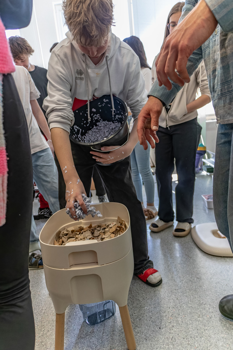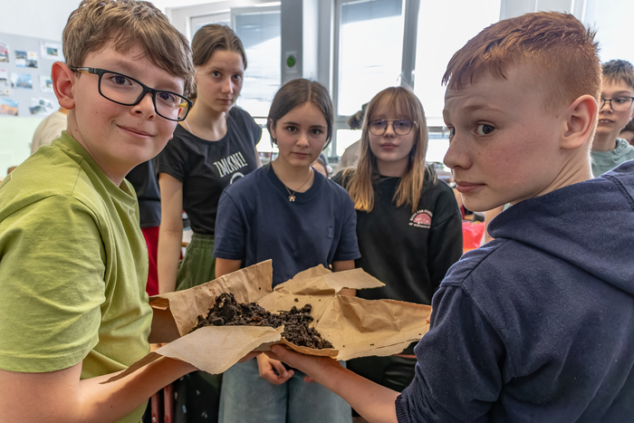 V pátek 4.dubna 2025 se sedmáci poslední vyučovací hodinu ponořili do světa kompostování v interiéru s pomocí žížal. Cílem bylo nejen přiblížit žákům principy ekologického nakládání s bioodpadem, ale také si celý proces prakticky vyzkoušet.