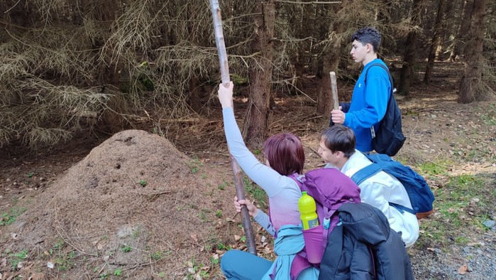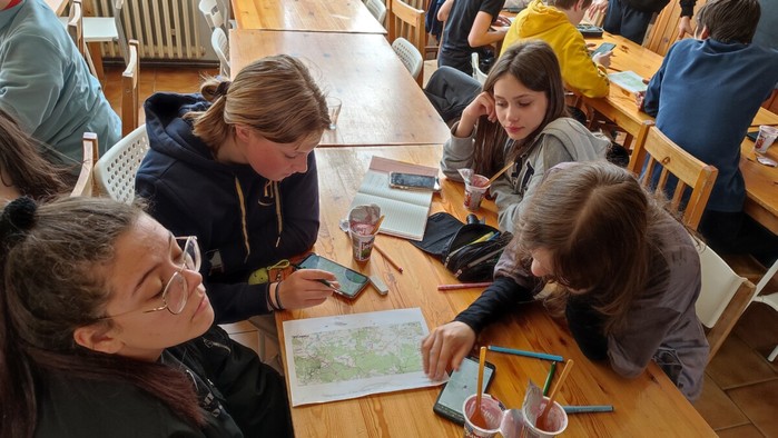 Žáci osmých tříd se na konci dubna zúčastnili Historicko-geografického kurzu. V rámci rozšiřování svých znalostí se seznamovali se svým okolím, fungováním přírody a vývojem krajiny. Vyvrcholením kurzu byl celodenní výlet, který si žáci naplánovali sami. Od svých učitelů získali klíčové body trasy. O těch museli zjistit informace a samozřejmě zvolit vhodnou trasu k jejich propojení. Protože děti raději využívají moderních technologií, bylo pro některé náročnější zorientovat se v klasické mapě a vytvořit i výškový profil cesty. Nakonec se ale podařilo a mohli jsme společně vyrazit na trasu, kterou žáci nejen vytvořili, ale i nás vedli k jednotlivým cílům. Vyzkoušeli si tak, jak by se měl chovat správný vůdce skupiny. Z cesty jsme párkrát i sešli a nastala tak jedinečná možnost vyzkoušet si řešení krizové situace. Sice jsme díky tomu šli o téměř dva kilometry delší cestou, ale naštěstí jsme v pořádku skončili zpět v kempu a kurz jsme slavnostně zakončili táborákem.