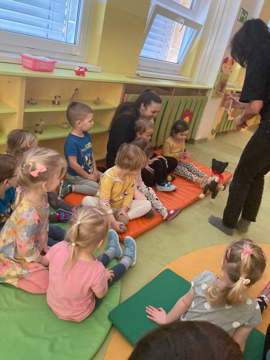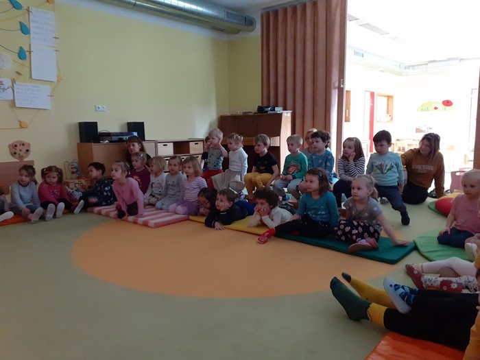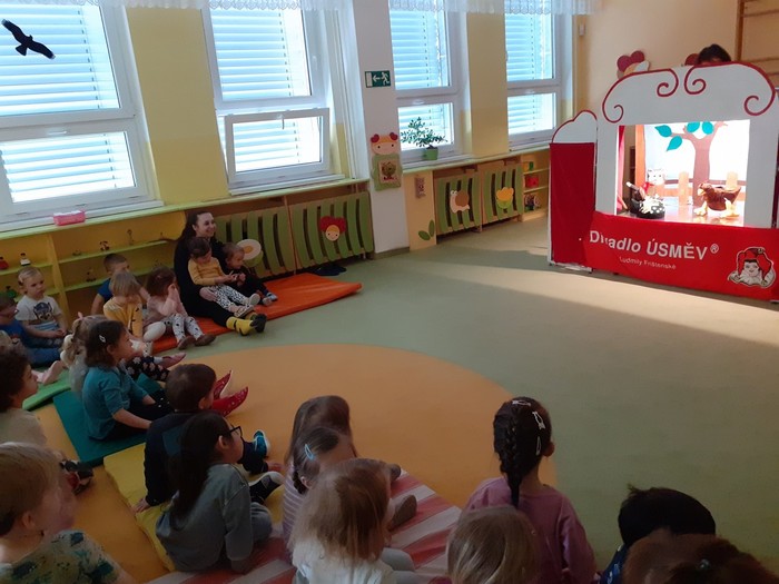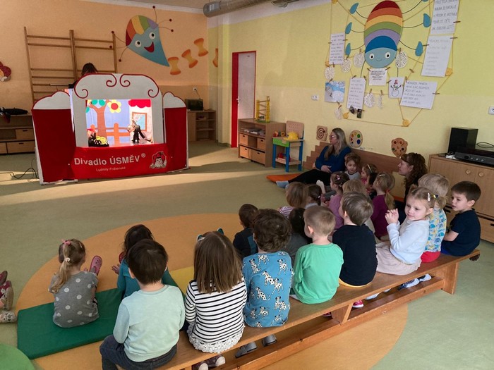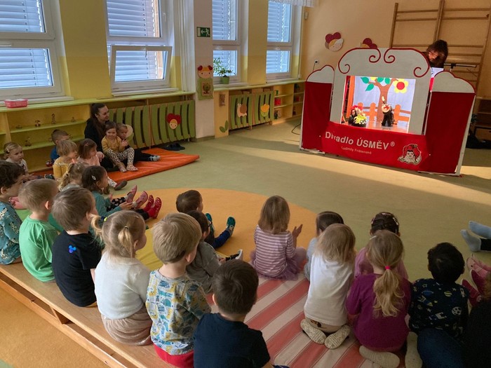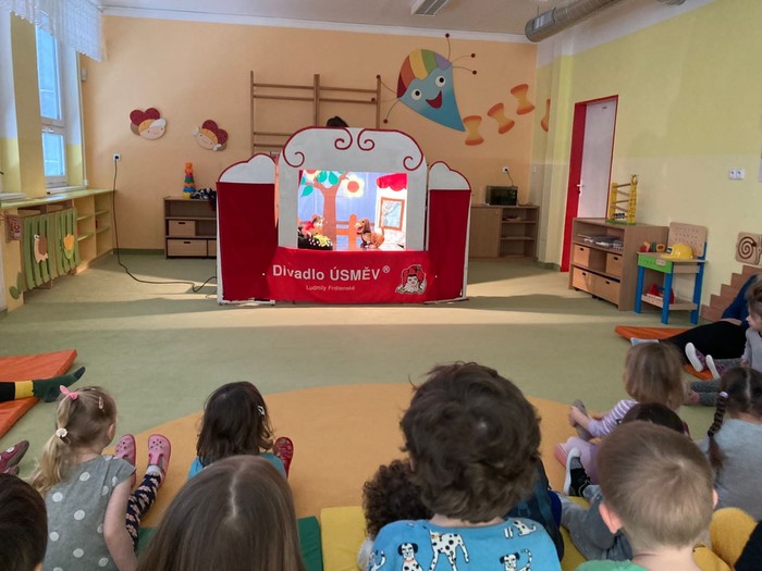 Broučkům, Zajíčkům a Medvíďatům přijelo Divadlo Úsměv zahrát milou pohádku plnou písniček „Jak koťátko zapomnělo mňoukat“.