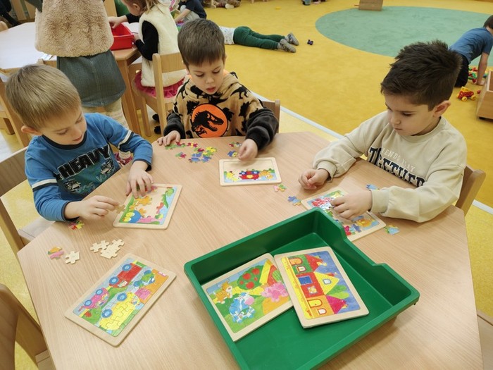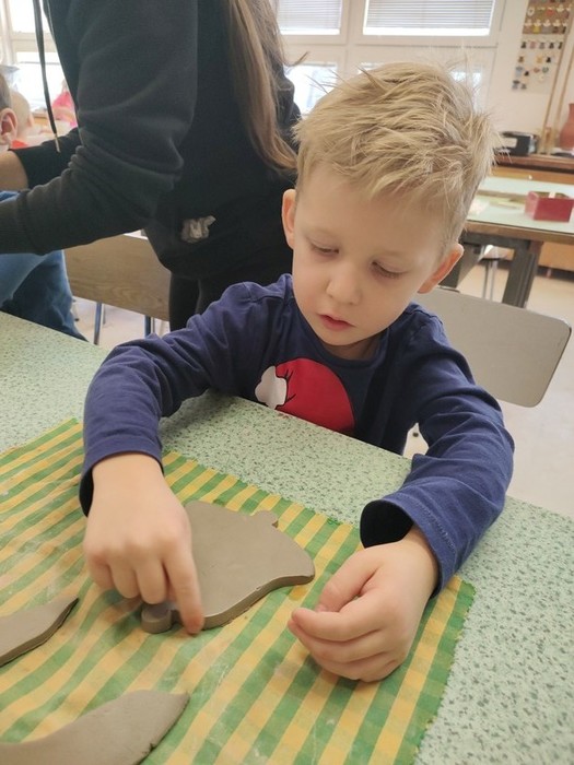 Děti ze třídy Ježci se již podruhé seznamují s keramickou dílnou, práce s hlínou je velmi baví a vždy se zapálením pracují. Samozřejmě se snaží i během dne v MŠ - stavby z konstruktivních stavebnic, společné hraní, výtvarné činnosti a skládání puzzlí.