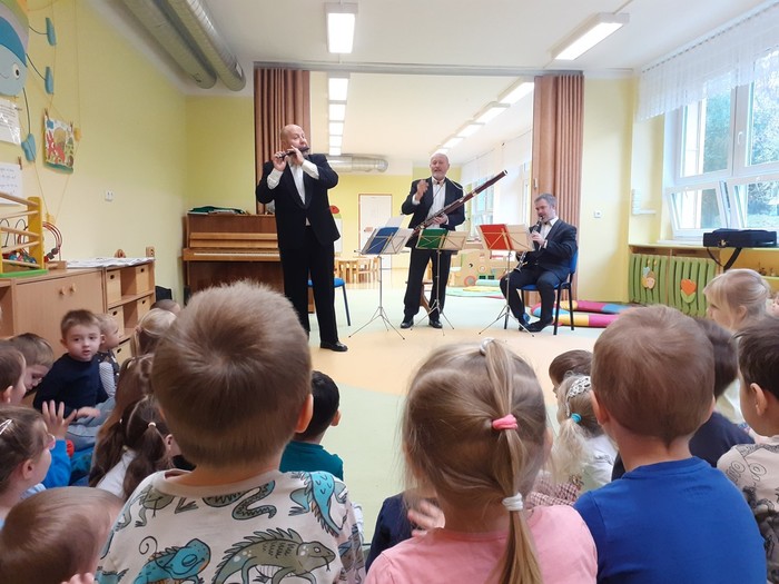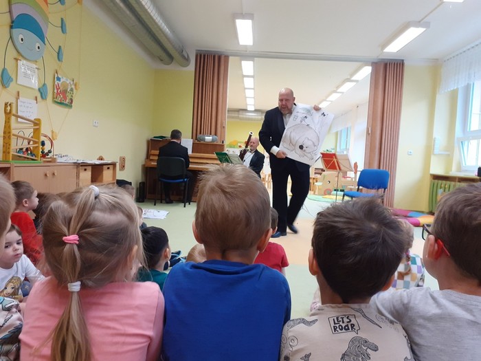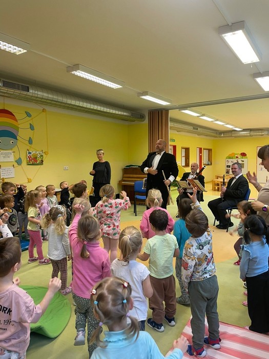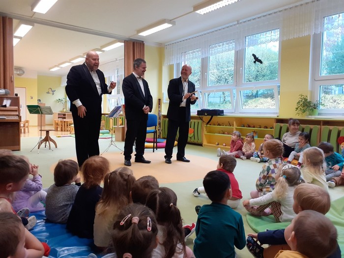 Koncertní mistři, hudební nástroje a pohádkové vyprávění statečném mravenečkovi plné hudby, zpívání, legrace i poučení. Dechové trio ACCORDO přineslo Broučkům, Zajíčkům a Medvíďatům nevšední zážitek. Těšíme se na další setkání :)