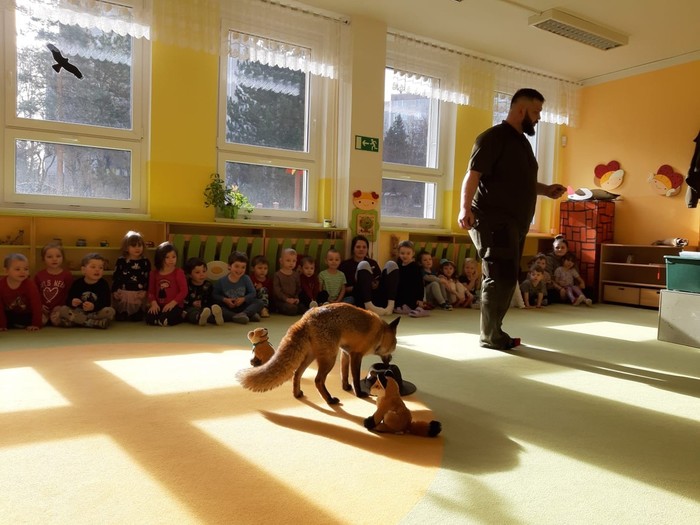 Environmentální vzdělávací program pro Broučky, Zajíčky a Medvíďata – návštěva lišky Coco se svým chovatelem ze vzdělávací agentury Pochop („POznej, CHápej, OPatruj“). Děti si mohly tuto šelmu našich lesů zblízka prohlédnout. Vyslechly si zajímavé vyprávění o tom, jak liška v přírodě žije. Na některé otázky děti hledaly odpovědi samy – např. proč má toto zvíře tak dlouhý a huňatý ocas. Liška přitom pobíhala volně mezi dětmi. Největším zážitkem určitě bylo to, že si ji děti mohly bez obav pohladit. Vyrostla totiž odmalička v lidské péči. Přesto všichni teď víme, že se nedá vycvičit jako pejsek a pořád zůstává šelmou, které je nejlépe v jejím přirozeném prostředí.
