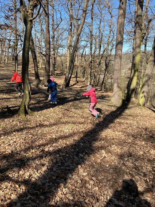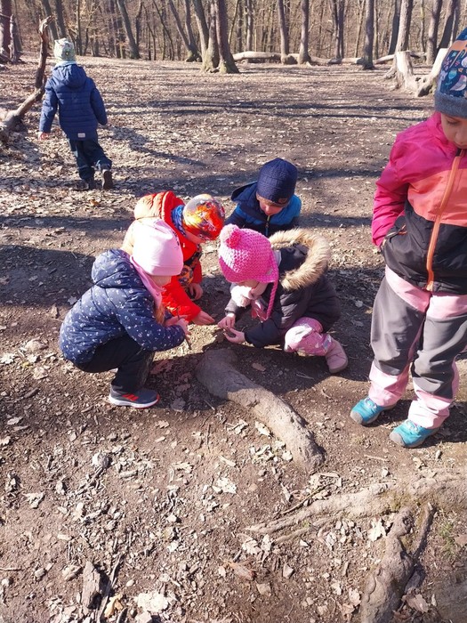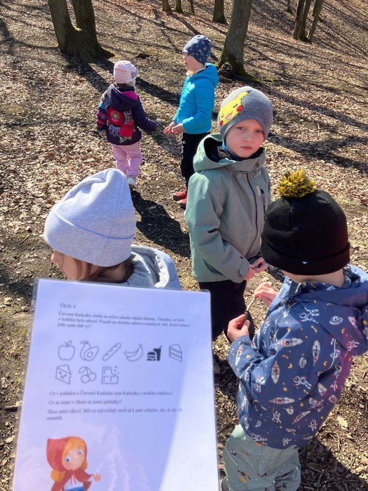 V lese jsme jako doma. Tentokrát si Veverky a Ježci pobyt v lese zpestřili pohádkovou stezkou. Děti nejen využily svých znalostí pohádek, ale také hádaly, hrály hry a tvořily z přírodnin, aby se dostaly až k pokladu. Obě třídy byly úspěšné a všichni se těšíme na další lesní hry. J