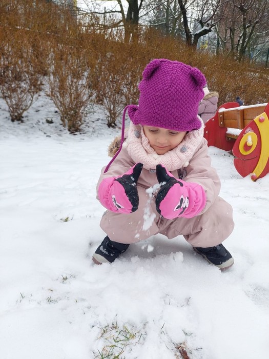 Pokud nám to počasí dovolilo, trávili jsme čas venku, ať už na zahradě, na procházkách či v lese. Hráli jsme si s míčem, běhali, kreslili křídami, poznávali další okolí kolem mš a pokud byl sníh, řádili jsme ve sněhu.