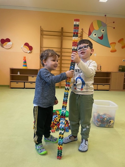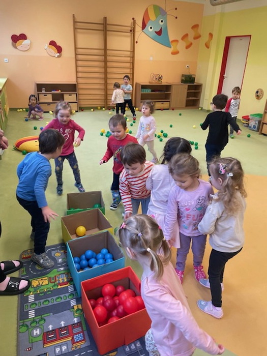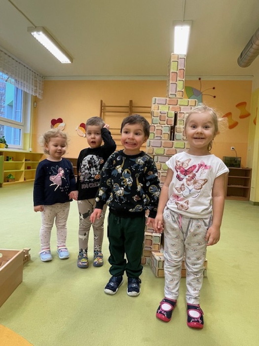 Ve třídě jsme pak rozvíjeli své pohybové schopnosti. Zpívali jsme, malovali, skládali, třídili, tančili, povídali a spolu se smáli.