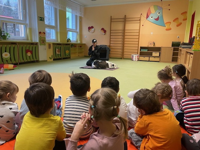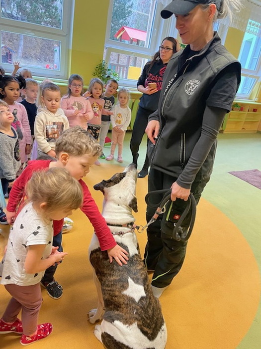 V lednu nás navštívil pejsek z programu Bezpečný pes. Naučili jsme se, jak se chovat, když potkáme venku cizího psa.