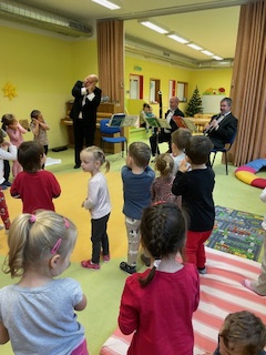 V prosinci nás mimo jiné návštivilo dechové trio Accordo, jejichž koncerty si vždy moc užijeme. Tentorkát nás provázeli pánové cestou do Betléma, společně jsme si zazpívali i zatančili.