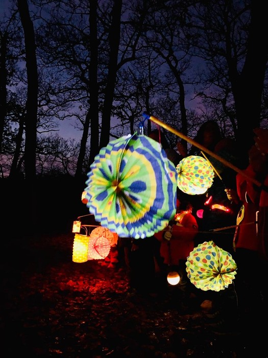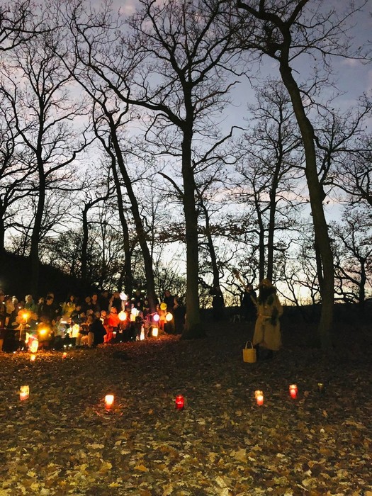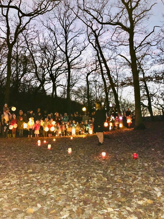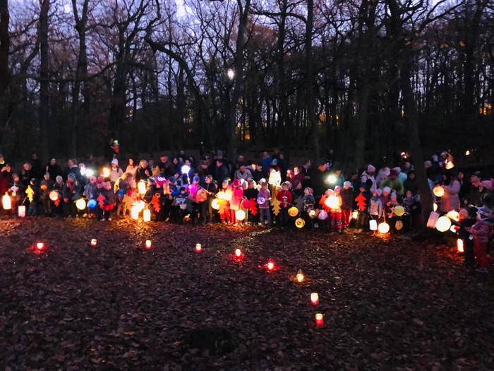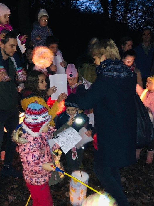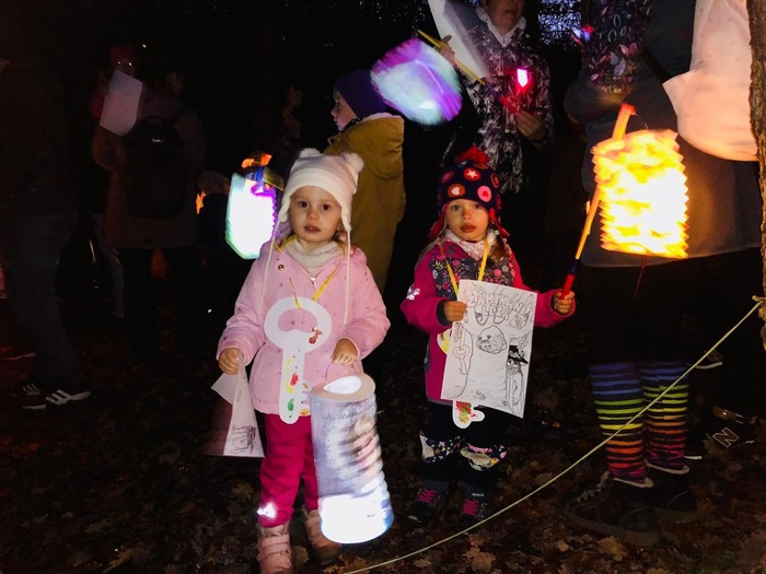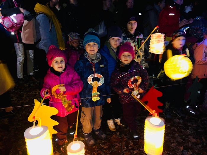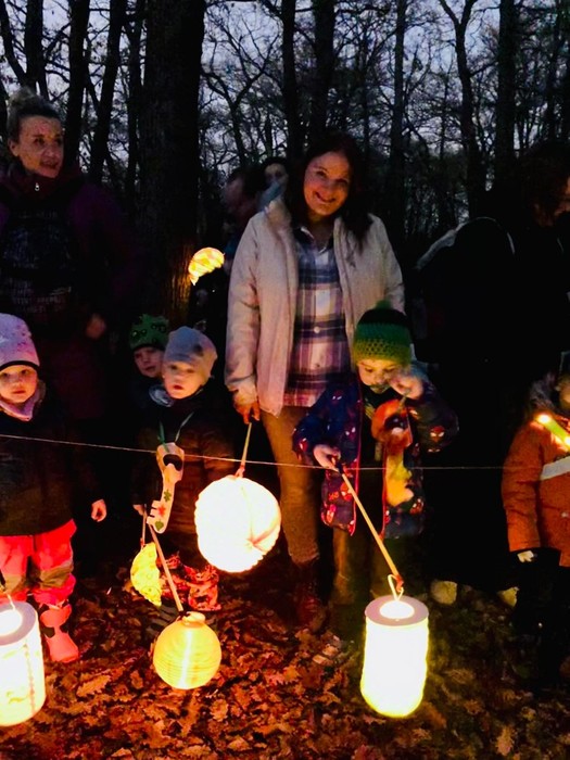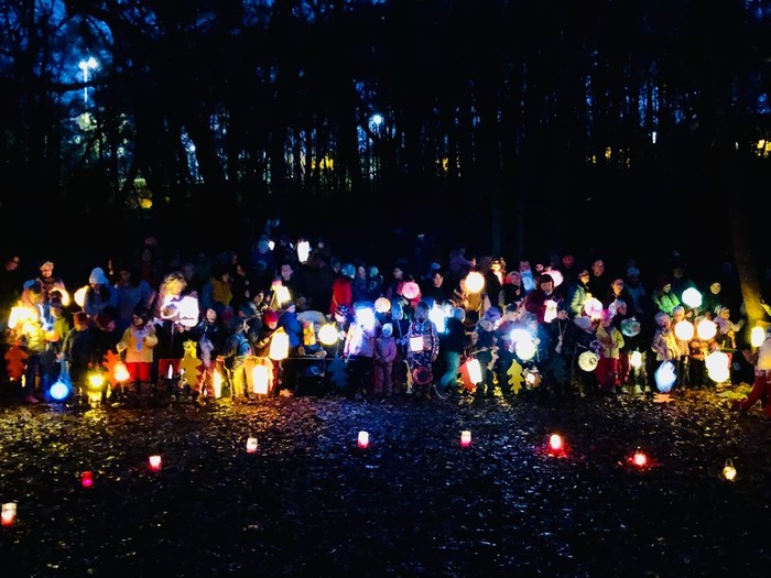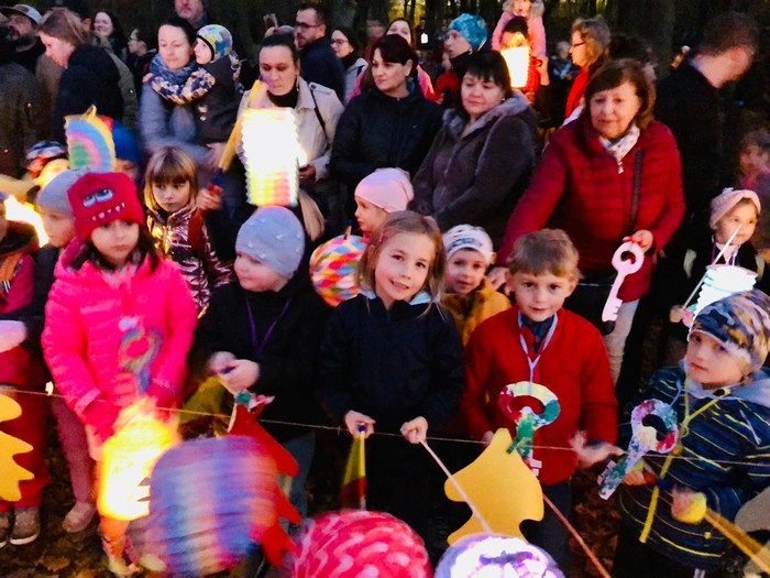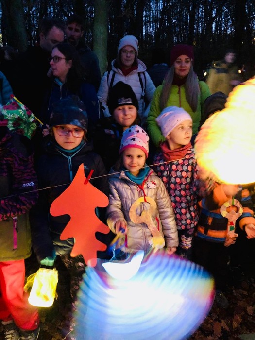 Svatomartinský průvod přinesl podle tradice do lesa světlo, Pán lesa se ukázal a děti mu pomohly symbolicky uložit přírodu k zimnímu odpočívání.