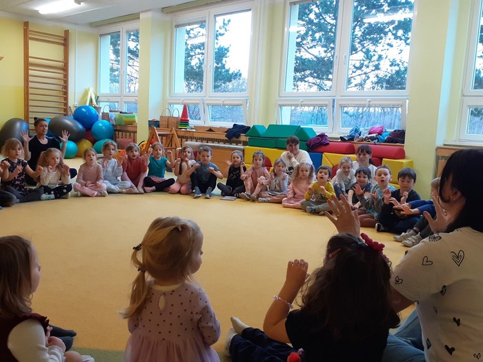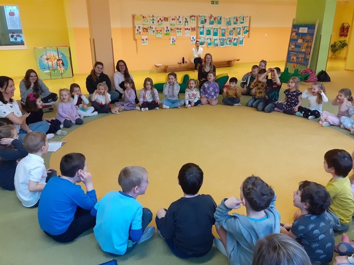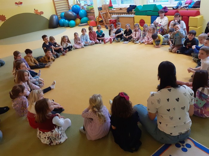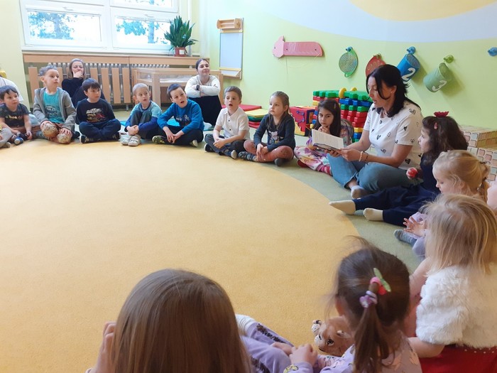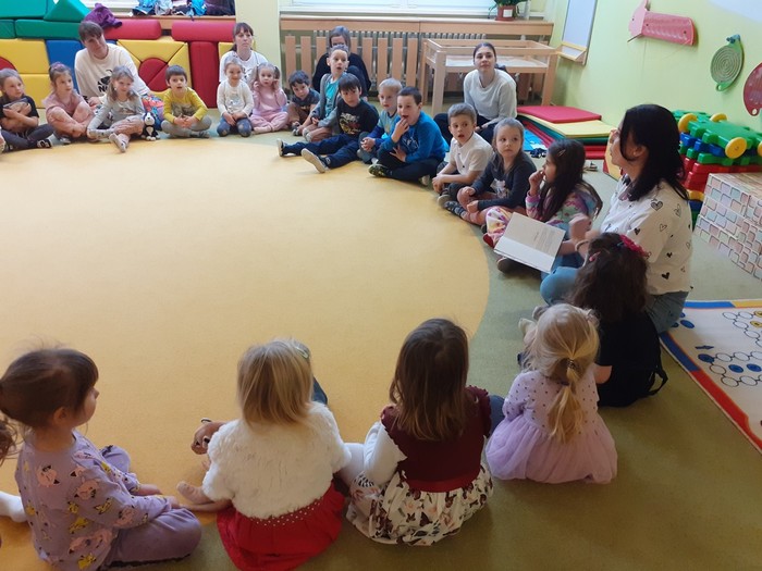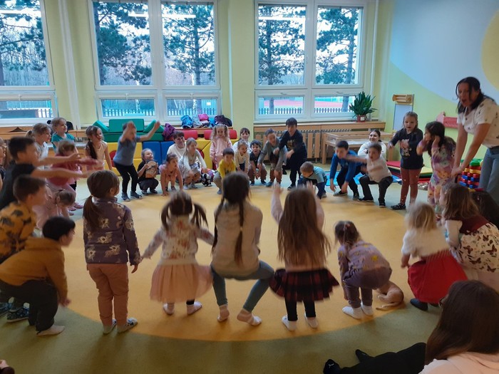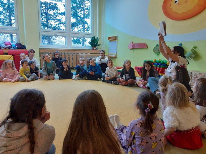 Tentokrát nás navštívila paní spisovatelka Olga Rusňáková a přečetla dětem příběh ze své knihy „Zachumlej se, pohádka začíná“. Paní Olga nejen poutavou četbou, ale komunitními aktivitami a svou empatií vytvořila nádhernou atmosféru a připravila nejen dětem nezapomenutelný zážitek.