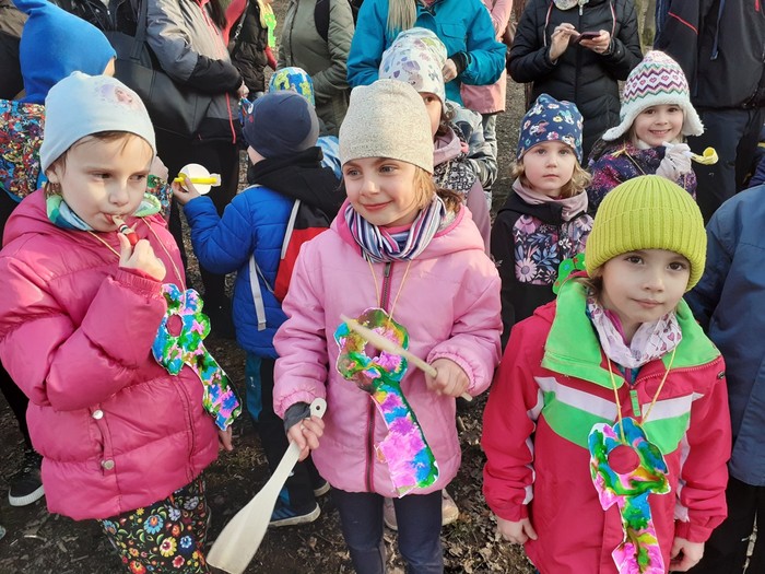 Za velikého rachotu, břinkotu a jásotu jsme Mořenu odnesli a shodili do rokle, symbolicky svými klíči odemkli les, zazpívali a ozdobili lítečko a smlsli sladkou výslužku. Vždyť jaro už je tu!