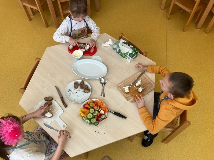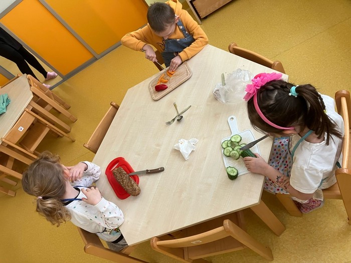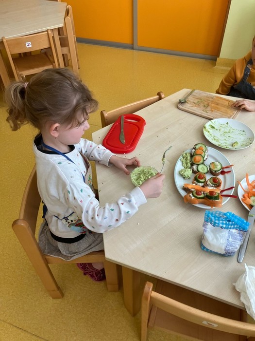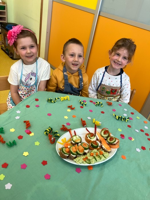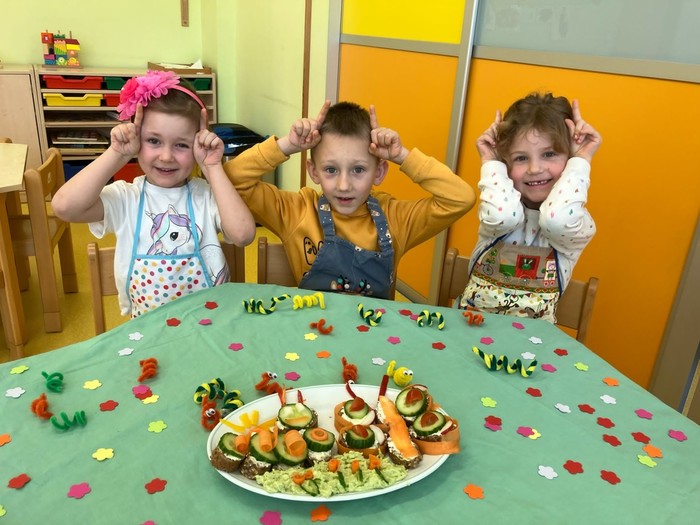 S příchodem jara se kuchařská skupina Veverek zapojila do akce Zdravé pětky a vyčarovala na talíři barevný příběh o proměně housenky v motýla. O pokrm skvělé chuti plný vitamínů se kuchaři podělili s celou třídou. Vše zmizelo z talíře tak rychle, jako kdyby se do jídla pustily samotné housenky J