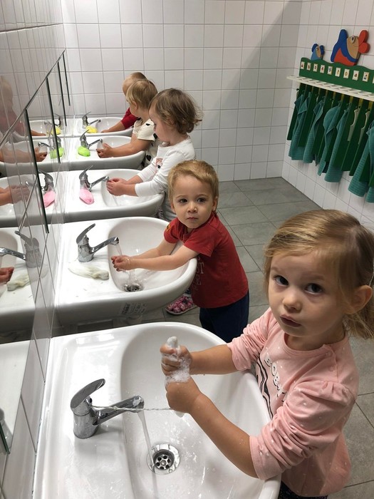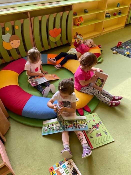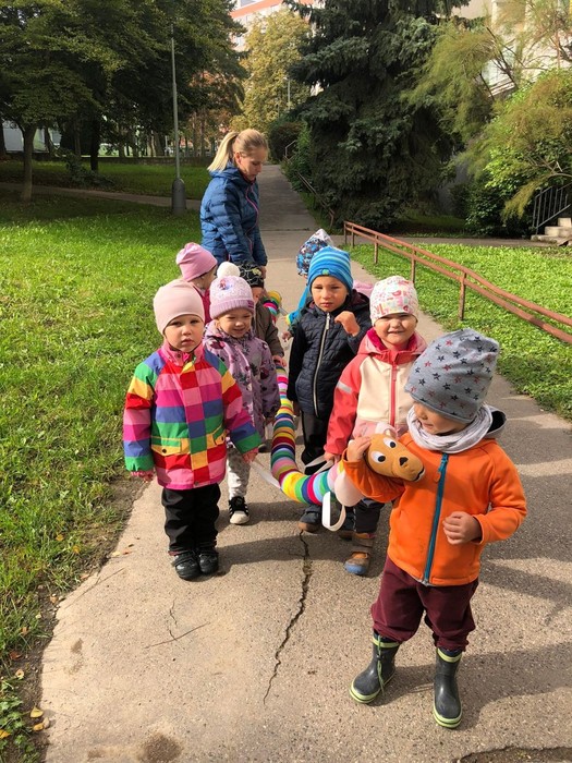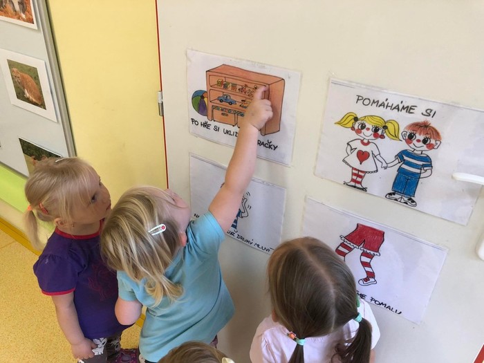 Ve školce se toho naučíme hodně! Proto již s úsměvem chodíme do školky každý den. Rozvíjíme se v sebeobslužných dovednostech, zdvořilostních i hygienických návycích, staráme se o rybičky, které jsme koupili v obchodě pro zvířátka, zpíváme, cvičíme, procvičujeme řeč i rozum.