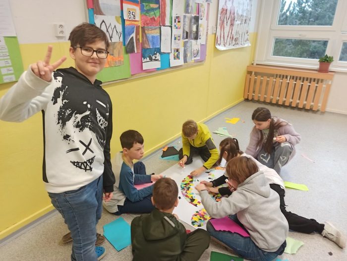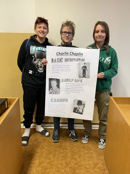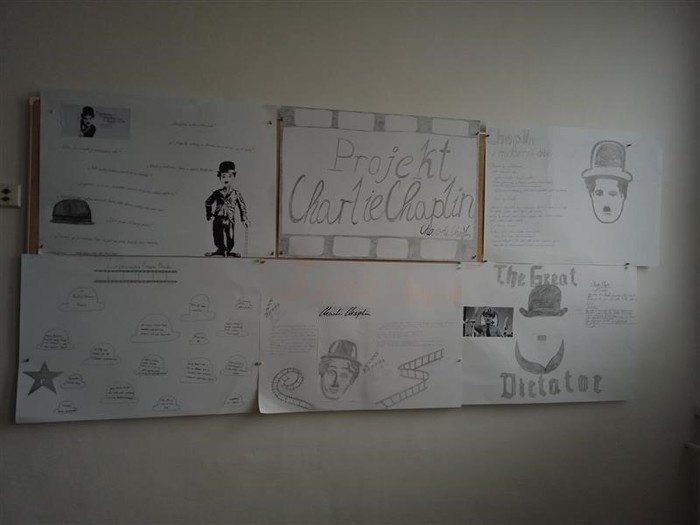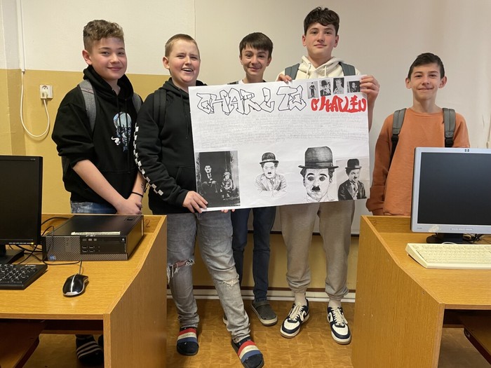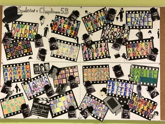 Procházíte-li se po chodbách naší školy, za každými dveřmi se odehrává jiný malý příběh. Je vzrušující snažit se na základě hudby, zvuků, dětského šveholení a upřímné radosti uhádnout, co se za dveřmi skrývá. Dnes tvoříme opravdu všichni. Naši nejmenší se s Chaplinem seznamují možná poprvé. Ve třídách se maluje, vystřihuje, děti sledují první grotesky s naším hlavním protagonistou. Ale i ti nejmenší už díky paním učitelkám vědí, kdo je to režisér, kameraman či co je scénář nebo casting. Žáci druhého stupně taktéž aktivně tvoří. V některých třídách se hraje pantomima či malé divadelní představení, jiní pronikají do tajů optických iluzí. Ti starší si natáčejí vlastní videa na téma grotesky o „těžkém“ životě deváťáků, která následně zpracují a určitě se s námi o ně i podělí. Ve vyšších ročnících probíhají tematické přednášky, které prostřednictvím Charlieho Chaplina přirozenou cestou žáky a žákyně vtahují do bouřlivé doby, která významně poznamenala podobu dnešního světa.