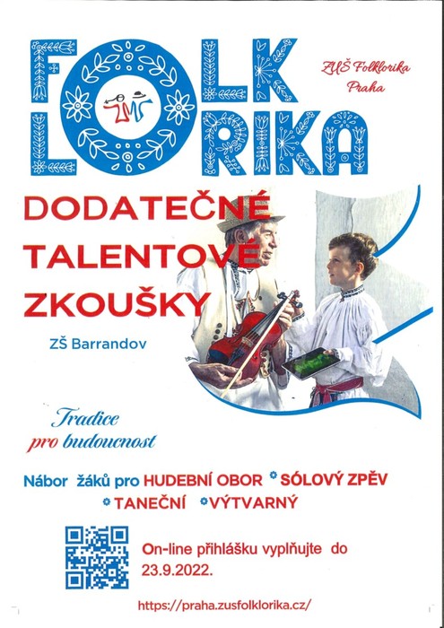 Základní umělecká škola Folklorika bude pořádat dodateční přijímací zkoušky do několika odborů.